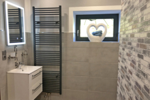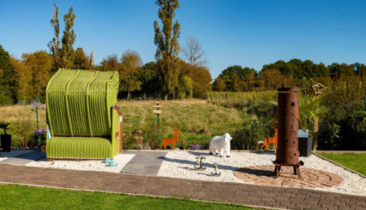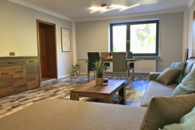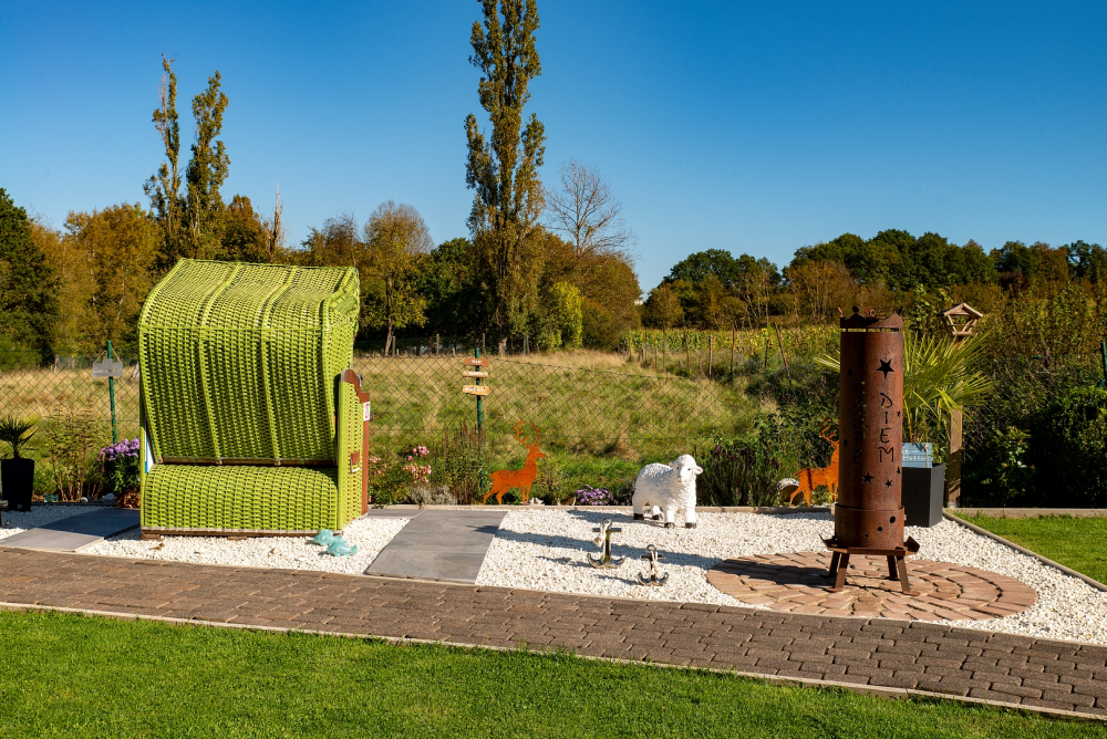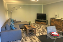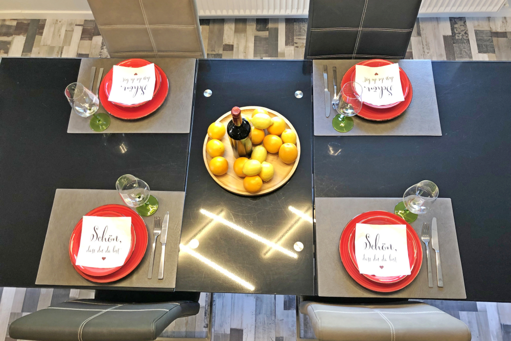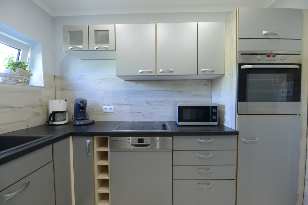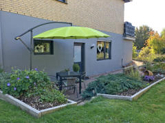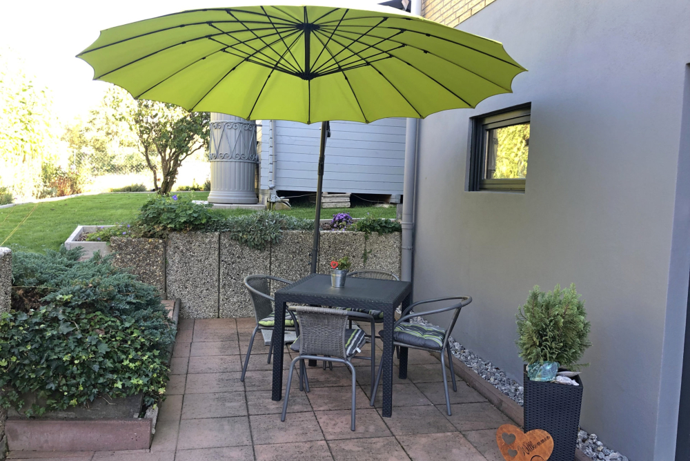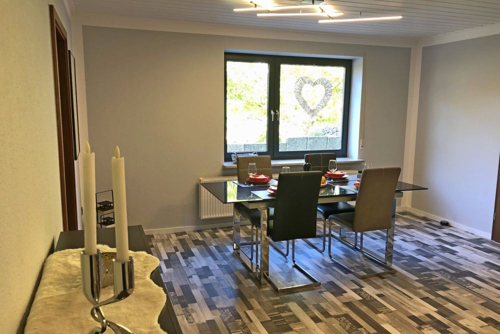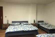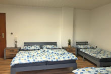 Unsere gemütliche Ferienwohnung mit eigenem Eingang ist 73m² groß und bietet Platz für 1-5 Personen. Sie besitzt einen großen Wohn/Essbereich mit Schlafcouch, TV und W-LAN zur kostenlosen Nutzung. Im geräumigen Schlafzimmer befindet sich ein Doppelbett, zwei Einzelbetten, sowie zwei Kleiderschränke. Die Küche ist komplett ausgestattet mit Spülmaschine, Microwelle und zwei Kaffeemaschinen (Filter und Pads). Das große Badezimmer verfügt über eine bodentiefe Dusche, Handtuchwärmer und Waschmaschine. Alle Fenster sind mit Rollladen ausgestattet. Sie verfügt über einen eigenen Freisitz mit Terrassenmöbeln, ruhig an einem Wendehammer gelegen, umgeben von Wiesen und Feldern. Für mitgebrachte Fahrräder steht eine Garage zu Verfügung. Parkmöglichkeit am Haus vorhanden. In der gesamten Ferienwohnung besteht Rauchverbot. Hunde auf Anfrage erlaubt. Monteure sind herzlich Willkommen.